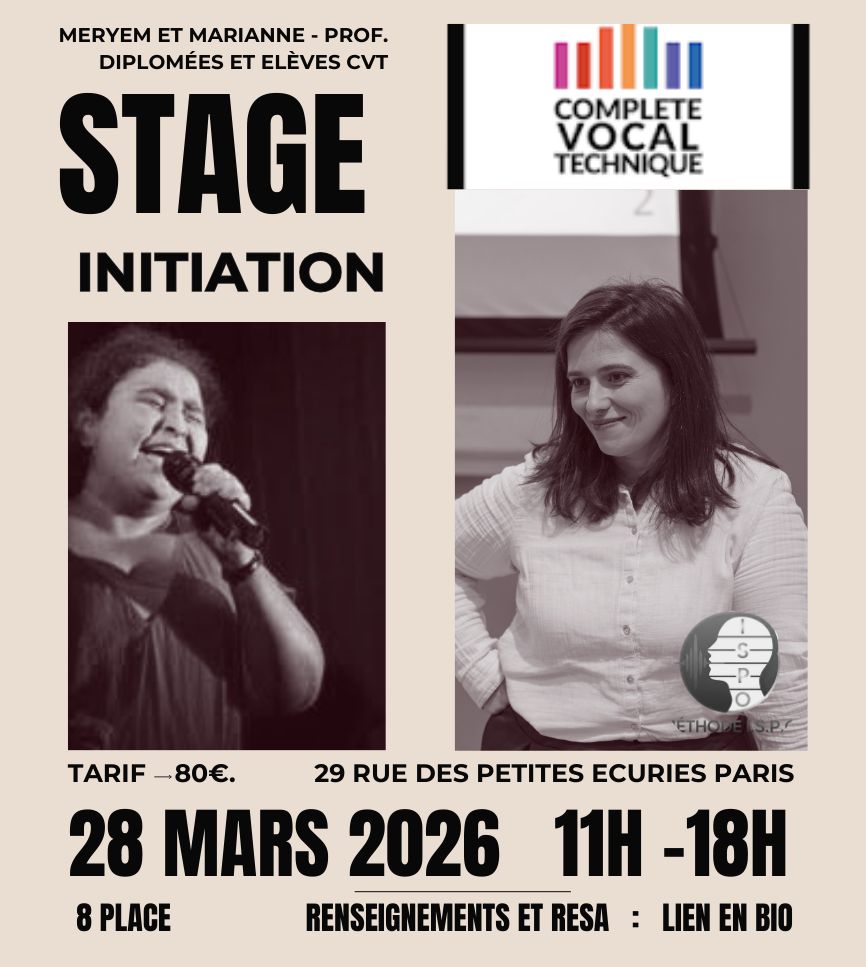 Nous vous proposons une journée d’initiation : les bases de la CVT avec pratique de groupe puis coaching individuel utilisant les outils CVT et ISPO (méthode avancée de coaching vocal pour intégrer ces nouvelles clés dans votre voix !). Vous allez comprendre comment votre voix fonctionne vraiment, identifier les petites habitudes qui sabotent votre chant et expérimenter des sensations de liberté et d’agilité vocale. Votre voix cache des possibilités que nous serons heureuses de faire émerger.